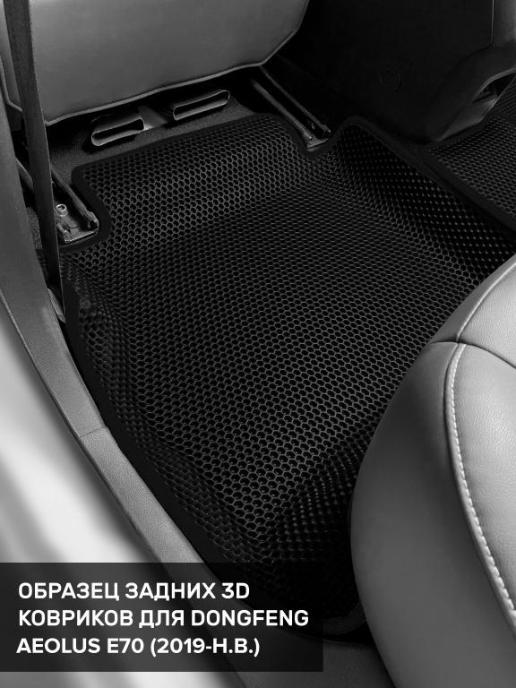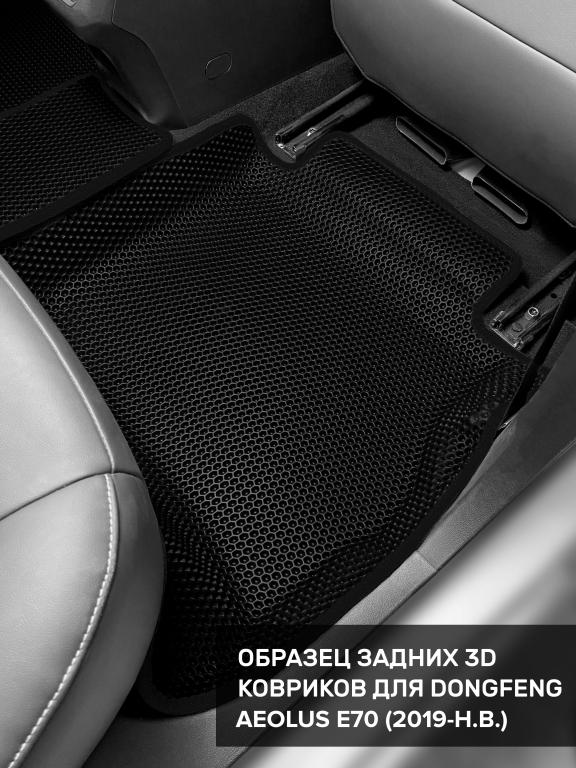 Автомобильные 3д коврики для DongFeng Aeolus E70 электрический (2019-н.в) в салон авто и багажник сделаны из инновационного полимерного материала EVA, изысканная структура в виде ячеек не дает воде, пыли и снегу разлетаться по салону машины и багажнику. 3д коврики зафиксированы на полу определенными клипсами, соответствующими DongFeng Aeolus E70 электрический (2019-н.в), и не двигаются в процессе езды.